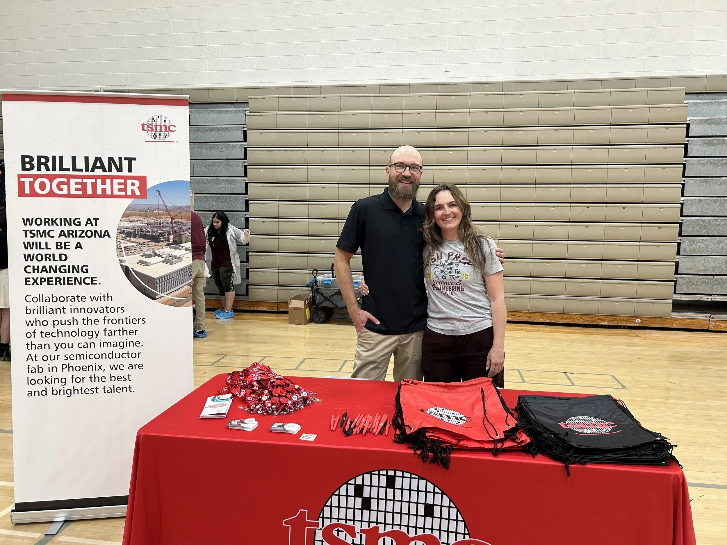 Lee, a new hire at TSMC, and his wife, a teacher at ASU Preparatory Academy, volunteered at TSMC’s booth for Semiconductor Adventure Day.